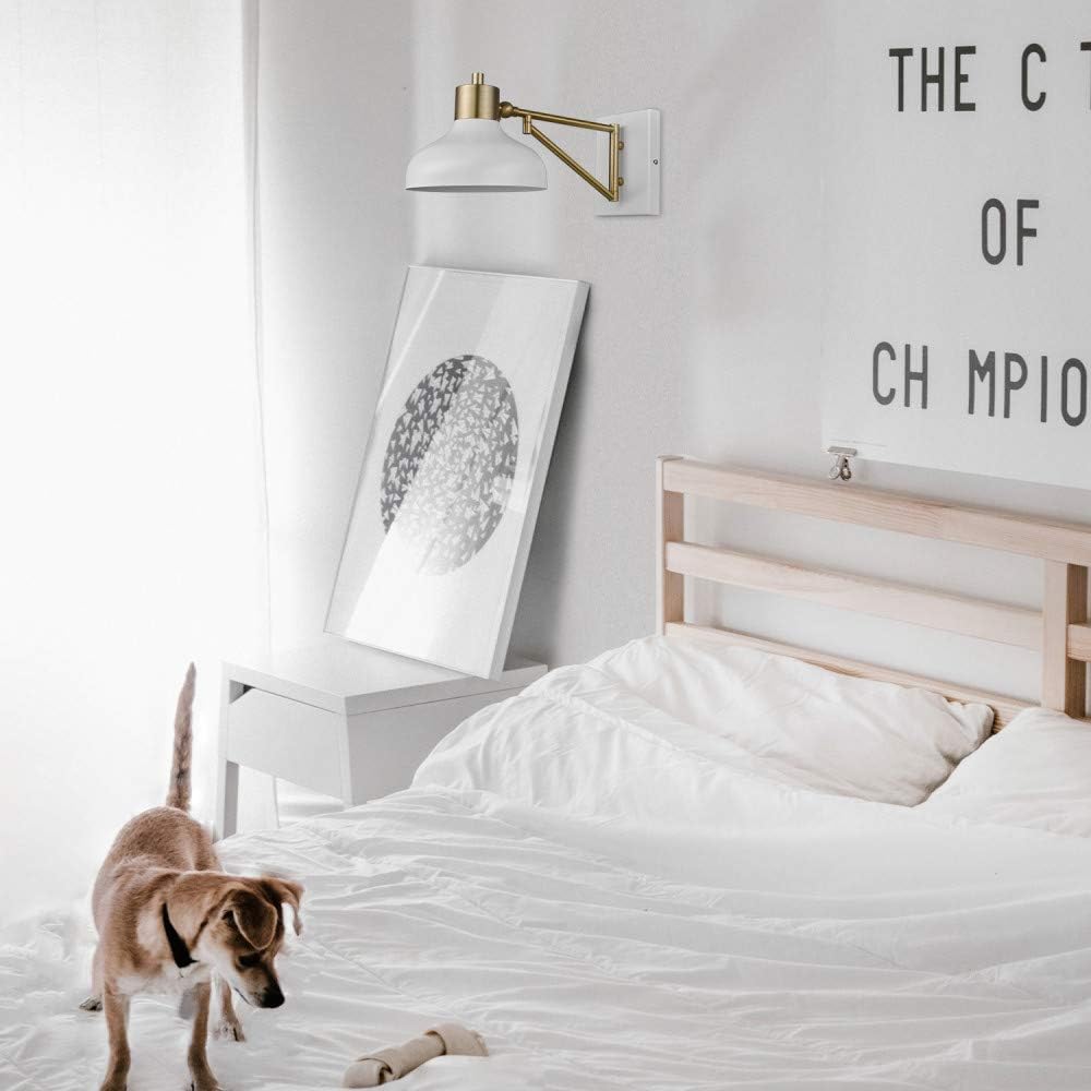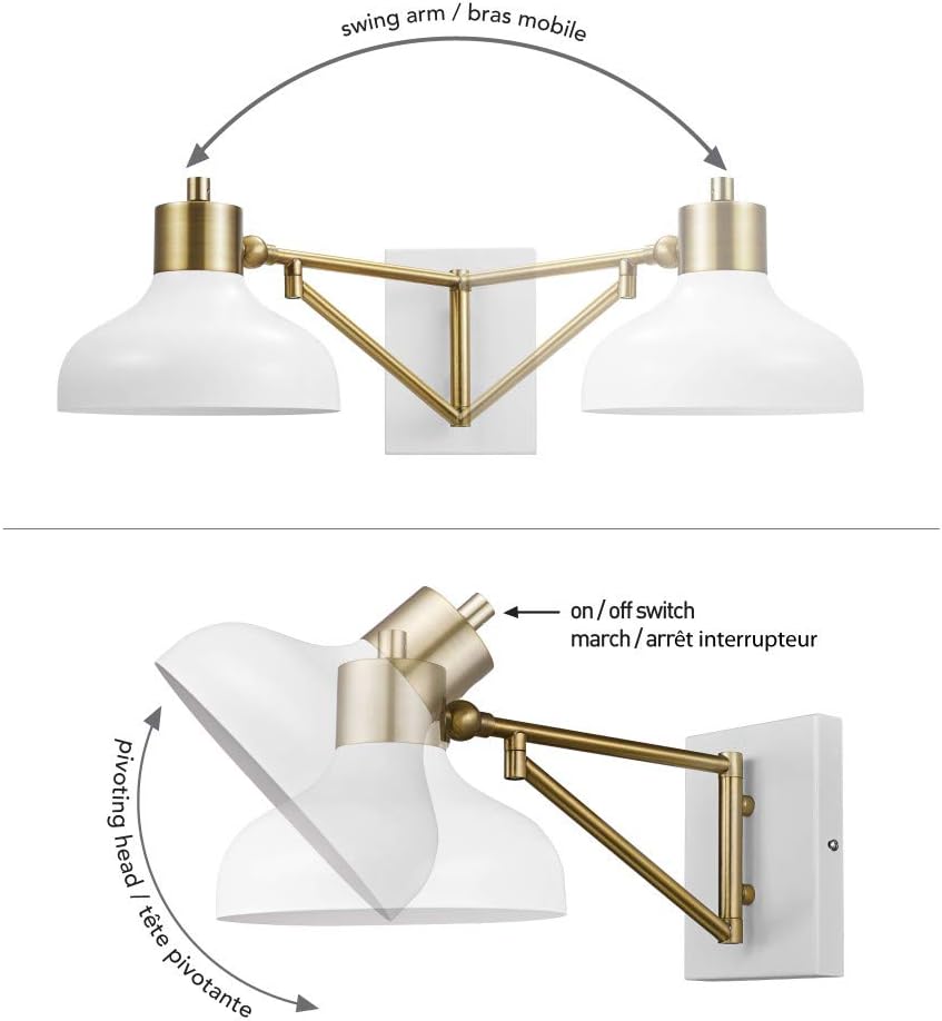 Crafted with a modern white finish and elegant brass accents, this wall sconce adds a touch of sophistication to any room. The white cloth cord adds a subtle touch of texture and interest, while the adjustable swing arm allows you to direct light exactly where you need it.