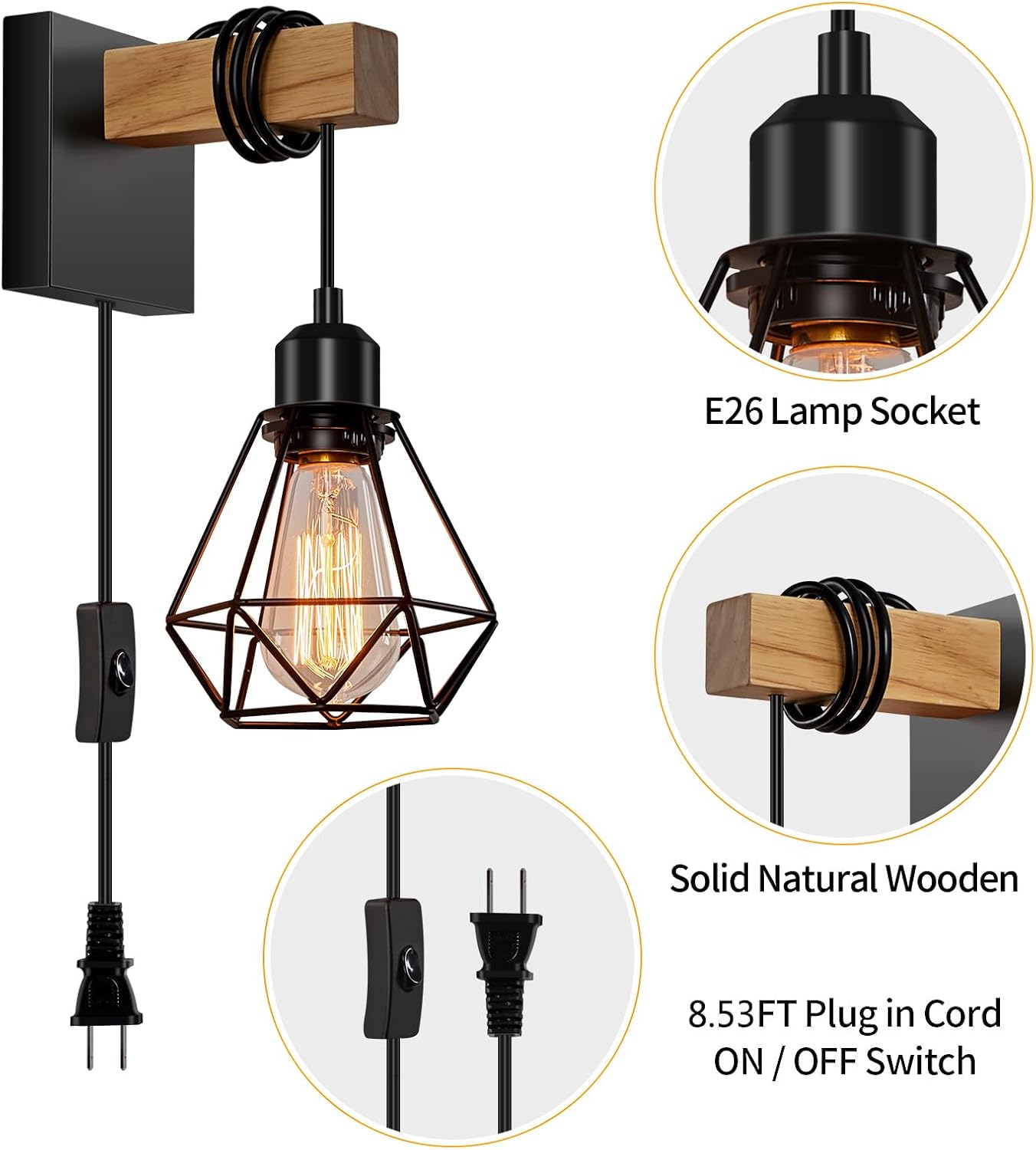 Introducing our Industrial Plug in Wall Sconces Set of Two, the perfect lighting solution for adding a touch of vintage charm to any room in your home. These rustic sconces feature a stylish cage design and a sleek square base, making them a versatile addition to your decor.