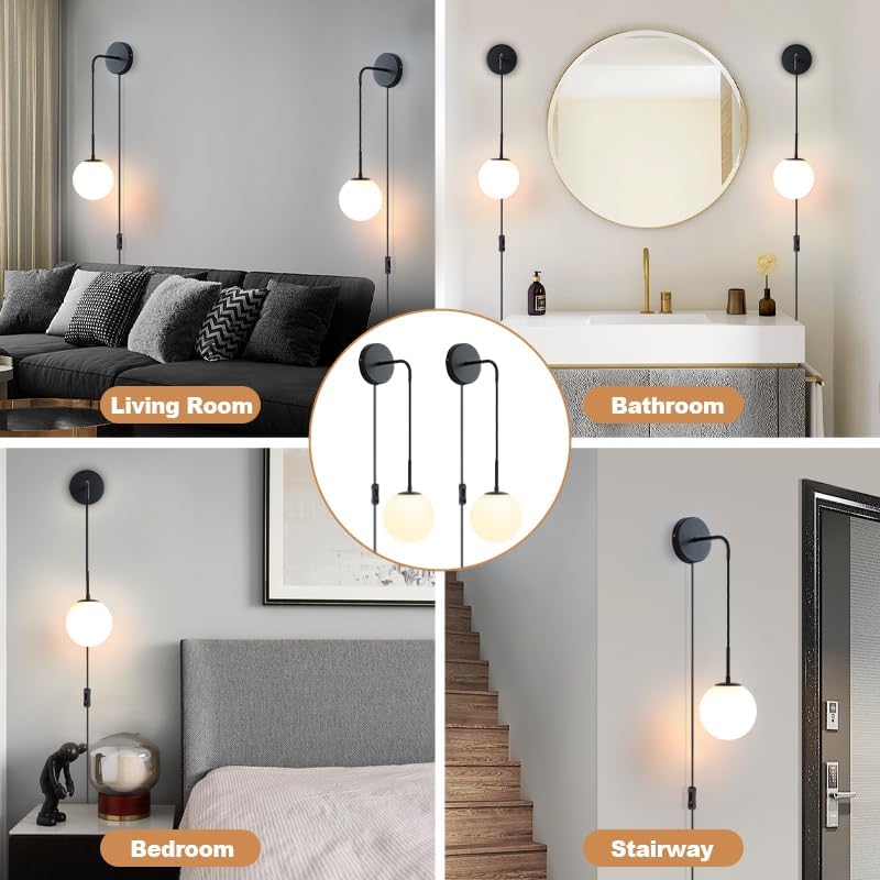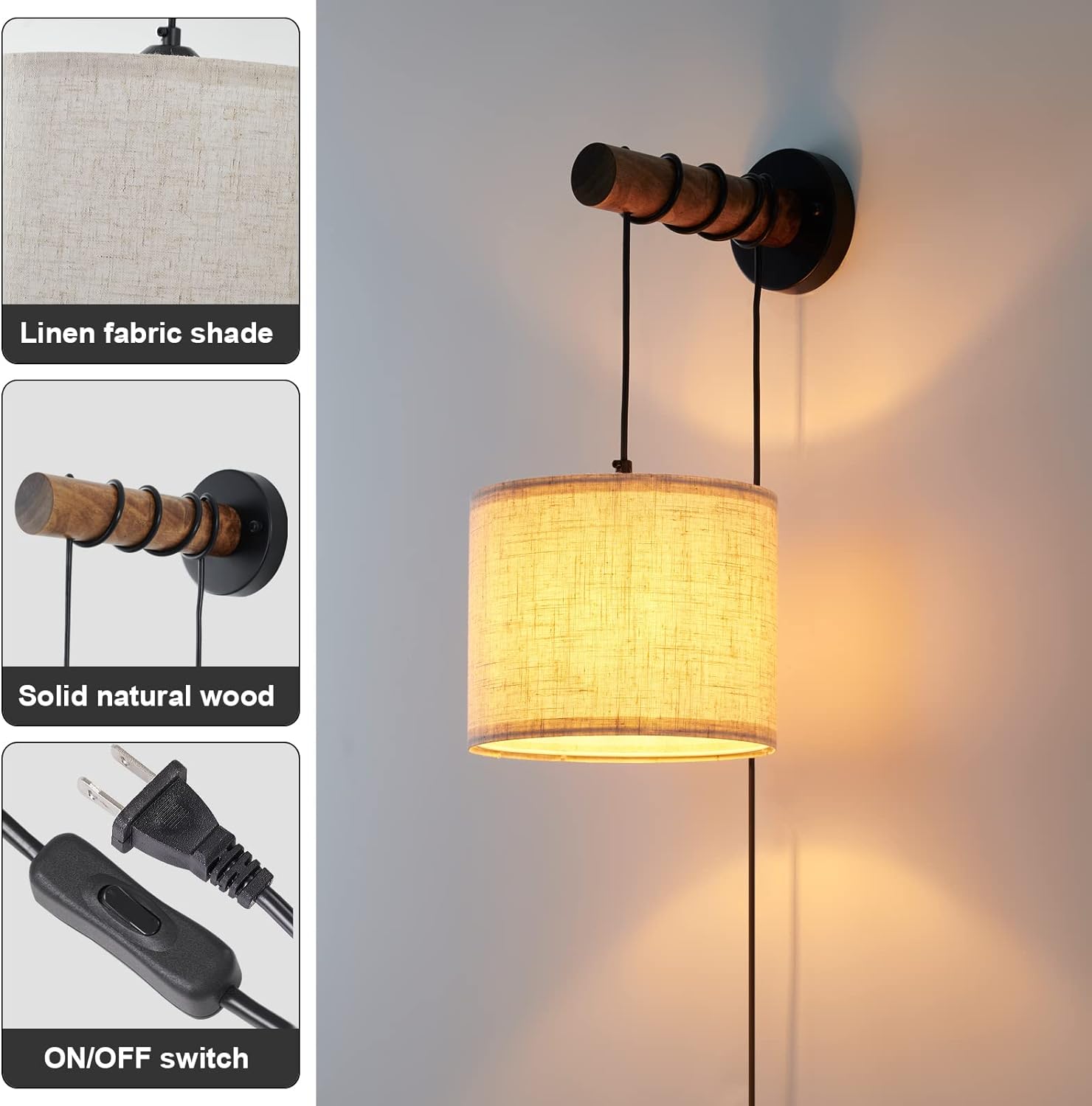 Brighten up your living space with this set of two farmhouse-inspired wall sconces. The rustic design features a wood arm and a fabric shade, creating a cozy and inviting atmosphere in any room. These plug-in wall lamps are easy to install and come with an on/off switch for convenience. Perfect for bedrooms, living rooms, or any space in need of extra lighting, these wall sconces will add a touch of charm and style to your home.